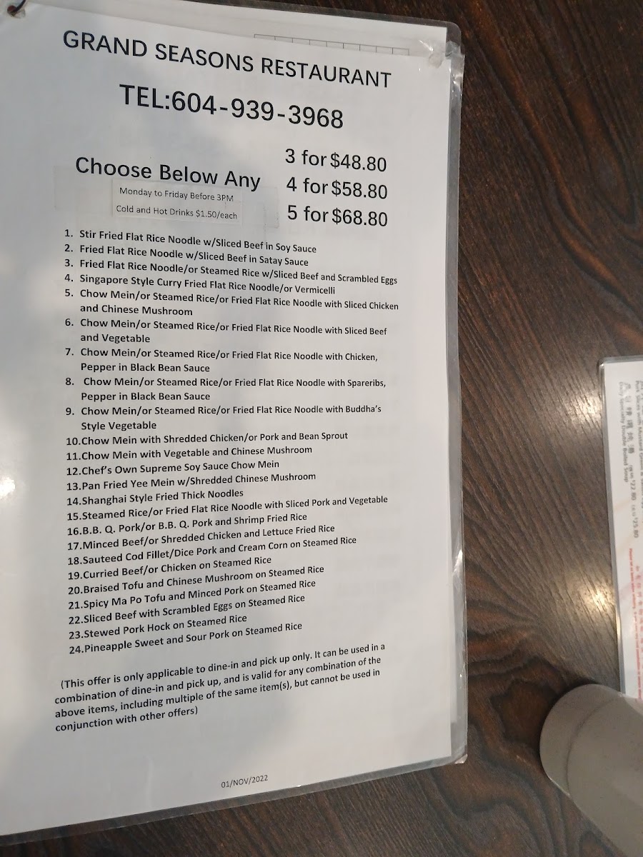 So whether you're in the mood for a hearty bowl of noodles, a delicious seafood dish, or some comforting soup, Grand Seasons Restaurant stands ready to serve. Don't miss out on this culinary haven that has become a cherished spot for residents and newcomers alike!