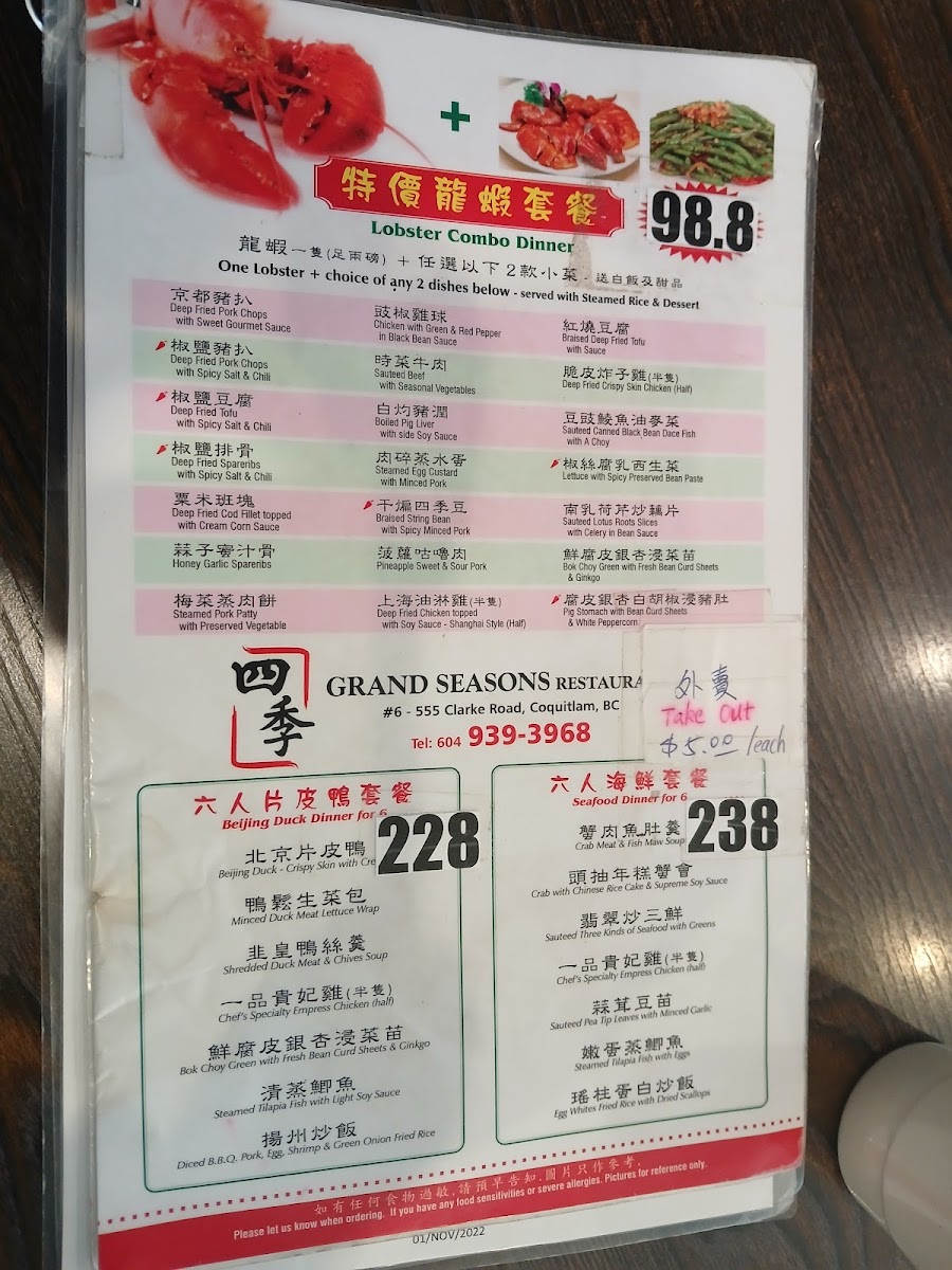 If you're searching for an authentic taste of Chinese cuisine in Coquitlam, look no further than Grand Seasons Restaurant. Nestled conveniently at 555 Clarke Rd #6, this charming eatery has become a beloved local gem, primarily known for its delicious and thoughtfully prepared dishes that draw on a variety of flavors from across the Chinese culinary landscape.